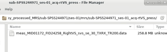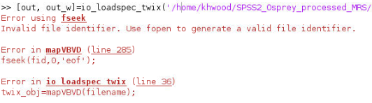 [out, out_w]=io_loadspec_twix(‘/home/khwood/SPSS2_Osprey_processed_MRS/sub-SPSS244971/ses-01/mrs/sub-SPSS244971_ses-01_acq-rtVS_press//home/khwood/SPSS2_Osprey_processed_MRS/sub-SPSS244971/ses-01/mrs/sub-SPSS244971_ses-01_acq-rtVS_press/meas_MID01172_FID24258_RightVS_svs_se_30_TXRX_TR200.data’);